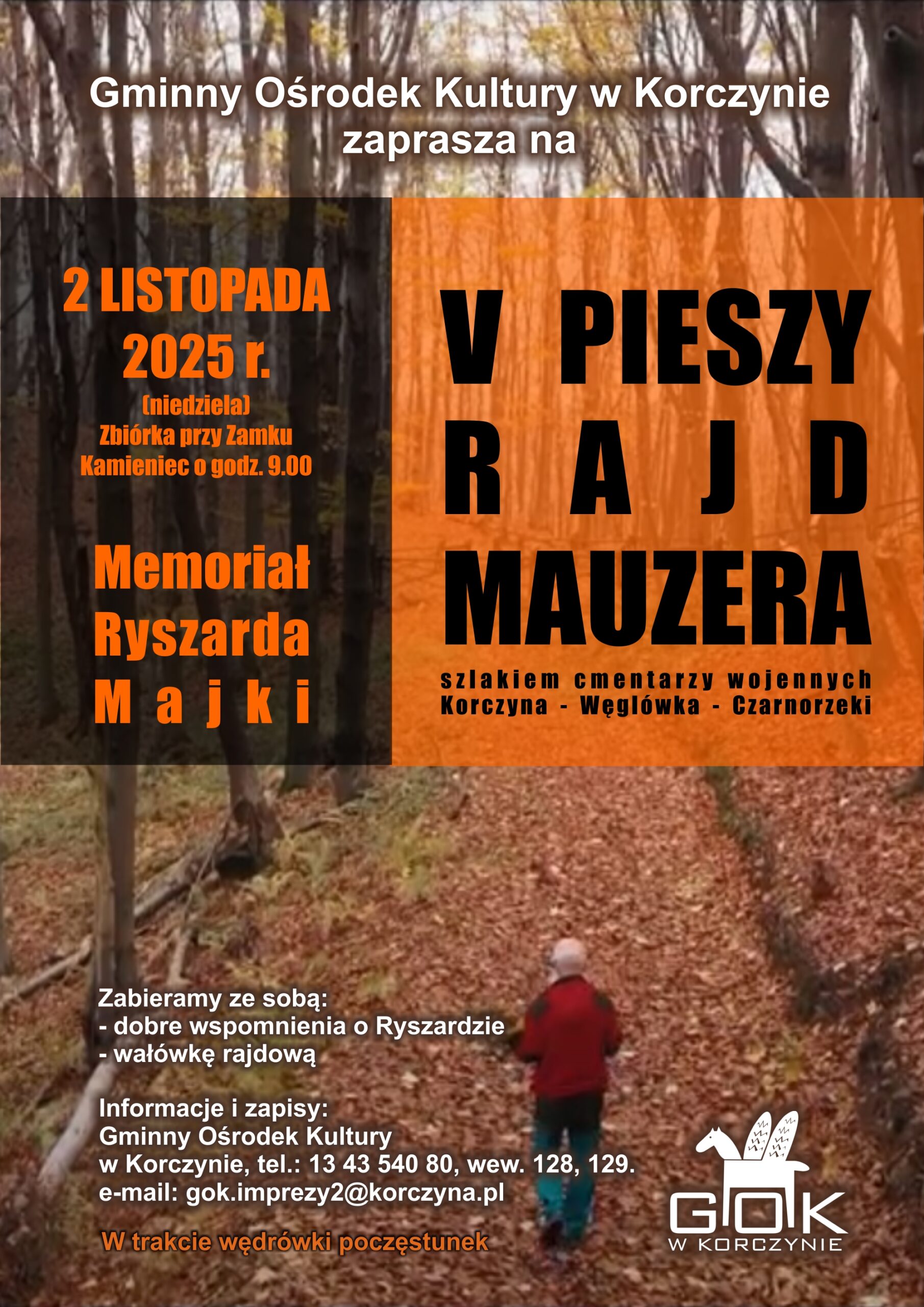 W dniu 2 listopada 2025 r. odbędzie się kolejna edycja Rajdu Mauzera – wyjątkowego wydarzenia turystycznego, które łączy pasję do wędrówek z pamięcią o lokalnej historii oraz osobie Ryszarda „Mauzera” Majki. Więcej informacji o wydarzeniu poniżej.